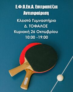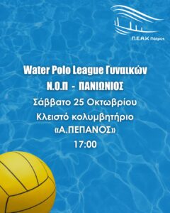 Το αθλητικό πρόγραμμα στο ΠΕΑΚ Πάτρας το Σάββατο και την Κυριακή 25-26 Οκτωβρίου / Δελτία Τύπου Σάββατο 25 & Κυριακή 26 Οκτωβρίου Η δράση συνεχίζεται στα γήπεδα και τις πισίνες του Π.Ε.Α.Κ. Πάτρας! Water Polo League Γυναικών – Ν.Ο.Π. vs Πανιώνιος Κλειστό Κολυμβητήριο «Α. Πεπανός» Σάββατο 25 Οκτωβρίου | 17:00 Ε.Φ.Ο.Επ.Α. Επιτραπέζια Αντισφαίριση Κλειστό Γυμναστήριο Δ. Τόφαλος Κυριακή 26 Οκτωβρίου | 10:00 – 19:00 Handball A2 Εθνική Κατηγορία Γυναικών – Ακαδημία των Σπορ vs Ολυμπιακός Κλειστό Γυμναστήριο Κ. Πετρόπουλος Κυριακή 26 Οκτωβρίου | 17:00 Ελάτε να στηρίξουμε τους αθλητές και τις ομάδες μας σε κάθε γήπεδο!
